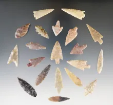Group of 20 African Neolithic arrowheads found in the Sahara Desert region. Largest is 1 1/2". |