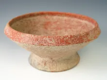 7" wide by 2 3/4" tall Ban Chang period Pedestal pottery vessel found in Burma |