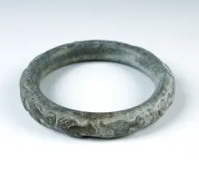4 3/4" diameter Neolithic black and white Stone Bracelet that is nicely patinated. |