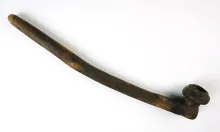 10 1/2" Arabic wood and painted leather vintage pipe. |