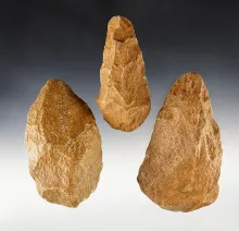 Set of 3 Acheulean hand axes from North Africa that is over 200,000 years old. Largest is 4 1/2 ". |