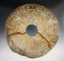 Large 7 1/8" diameter Chinese Bi-Disc. Appears to have been broken and mended long ago. China. |