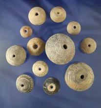 Group of 12 Pre-Columbian pottery beads and spindle whorls found in Mexico. |