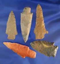 Set of five nice arrowheads found in Alabama, largest is 2 3/4". |