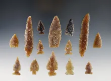 Set of 14 points made from Knife River Flint. Found near the Missouri River, South Dakota. | SOUTH DAKOTA | 130.00 | |