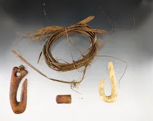Set of 3 Inuit Alaskan bone artifacts. largest is a 2 1/8" long hook & some original fiber twine. ALASKA 200.00