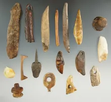 Group of 17 assorted Inuit bone and ivory artifacts, largest is 2 3/4". | ALASKA | 105.00 |