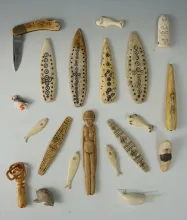 Group of approximately 20 assorted mostly contemporary Inuit bone carving items from Alaska. | ALASKA | 170.00 | |