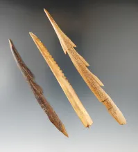 Set of three Inuit bone harpoons, one is broken near the base, largest is 5 5/8". Alaska. |