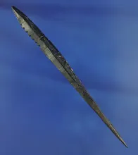 Large 21 1/2" long bone harpoon tip which has been glued tight in one spot (barely visible) - Alaska |