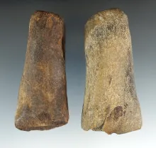 Pair of carved bone Inuit knife handles from Alaska. Largest is 3 3/8". |