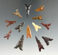Group of 13 Buck Taylor Points found North of Phoenix, Arizona. Ex. Jim Hogue Collection. |