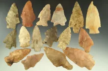 Set of 16 assorted arrowheads found in Arkansas, largest is 2 5/8". | ARKANSAS | 40.00 | |