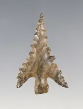 Incredible serrations on this 1 3/16" Gunther Barbed found in Shasta Co., California in the 1940's. |