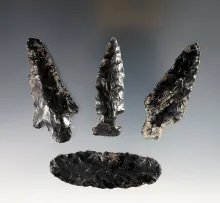 Set of 4 nice Obsidian points found in Baja, California. The largest is 2 5/8". |