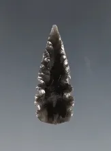 Incredible serrations on this 1 1/8" Calapooya made from translucent Obsidian. N. California. |