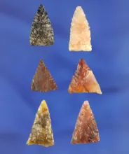 Set of six very nice Triangle points found in northern California, largest is 13/16". |