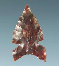 7/8" arrowhead - incredible micro-sidenotches - attractive semi translucent pink material. CA. |