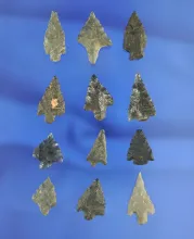 Large group of 12 assorted arrowheads, largest is 7/8". California. |