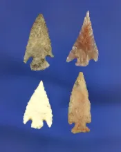 Set of four assorted arrowheads, largest is 7/8". California. |