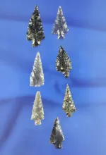 Set of 7 obsidian arrowheads, largest is 1 1/4". California. | CALIFORNIA | ||