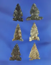 Set of 6 sidenotch arrowheads found in northern California, largest is 3/4". | CALIFORNIA | 25.50 | |