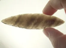 Incredible Flaking! 3" Obsidian bi-point that is nicely patinated with exceptional flaking |