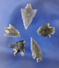 Set of five nice Obsidian Arrowheads found in California, largest is 1". |