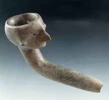 Well styled 4 5/8" Iroquois Human Effigy Ring Bowl Clay Pipe found in Simcoe Co.,, Ontario, CA |