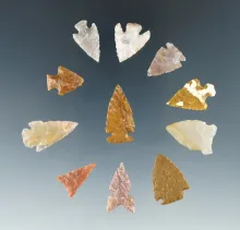 Set of 11 Colorado Arrowheads, largest is 15/16". Ex. Bob Roth Collection. |