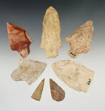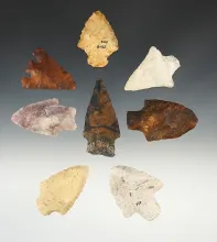 Set of 8 Coastal Plains Chert points found in Florida. The largest is 2 5/16". FLORIDA 100.00