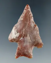 2 3/16" Newnan point made from attractive pink and white material. Found in Marion Co., Florida. |