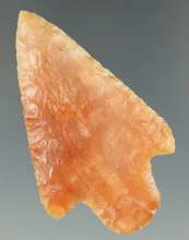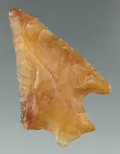 Exceptional material color! 2 1/4" Nicely flaked heat treated stemmed point. Found in Florida. FLORIDA 95.00