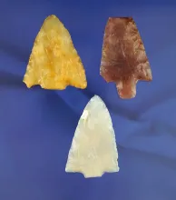 Set of three exceptionally colorful Florida arrowheads, largest is 2 13/16". FLORIDA 35.00