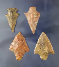 Set of four heavily patinated arrowheads found near the Santa Fe River, Alachua Co., Florida. FLORIDA 60.00