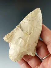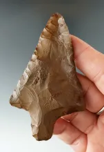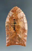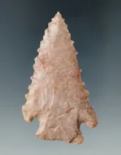 1 3/4" Paleo Clovis made from Jasper, found in Georgia. One barb restored. Rogers COA. GEORGIA 190.00