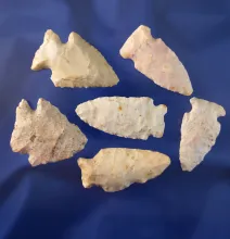 Set of six assorted arrowheads found in central Illinois, largest is 1 7/8". |