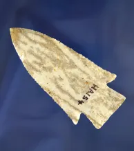 3 7/16" Kirk Cornernotched made from Burlington chert found in Pike Co., Illinois. Stermer COA. |