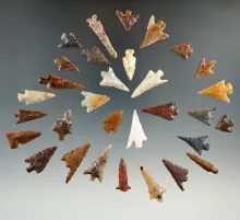Large group of 31 assorted Columbia River arrowheads, largest is 1 3/8". | KANSAS | 275.00 | |