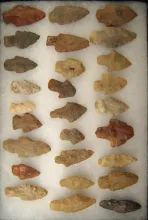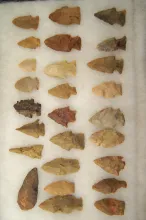 29 assorted Arrowheads, largest is 2 5/16" found in Greenup Co., Kentucky. |