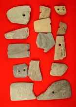Group of assorted damaged slate artifacts for study, largest is 3 1/2" found in Greenup Co., Kentuck |