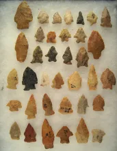 Set of 23 assorted Arrowheads and Knives, largest is 2 1/16". Found near Creelsboro, Kentucky. |
