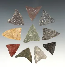 Set of 12 Triangle points found around Martha's Vineyard. The largest is 1 3/8". | MASSACHUSETTS | 120.00 | |