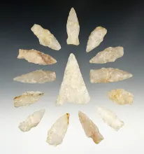 Set of 14 points found in Wakefield Massachusetts. Ex. Lynn Heatlie. The largest is 2 1/8". |