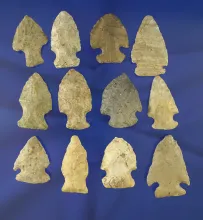 Set of 12 assorted arrowheads found in Michigan, largest is 1 3/4". Collected prior to 1950. MICHIGAN 40.00