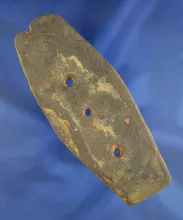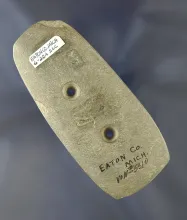 Very unique 4 3/4" engraved Three Hole Glacial Kame Gorget found in southern Michigan. |