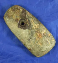 6 3/8" grooved slate Elliptical Atlatl weight found in Eaton Co., Michigan. |