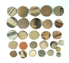 Set of 28 anciently salvaged pottery shards in various shapes. All found in New Mexico. The largest |