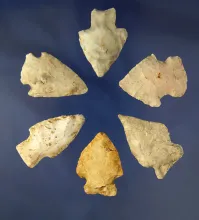 6 assorted Arrowheads from Cole Co., Missouri. Largest is 1 3/4". MISSOURI