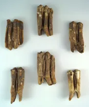Set of 6 buffalo teeth from a kill site on the Sun River 10 miles east of Augusta, Montana. | MONTANA | ||
